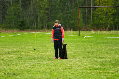 Kokonaisuudessaan siis ihan kiva, ekassa setissä asenne oli huonompi kuin toisessa. Elvi selkeästi lämpenee vähän hitaasti, virittelyistä huolimatta. Treeneissä en tykkää kummemmin viritellä sitä, ja se tekee kivasti, mutta kokeessa en tiedä häiritseekö se pieni virittely kuitenkin koiraa, kun ei siihen ole oppinut. En tiedä, täytyy pohtia!